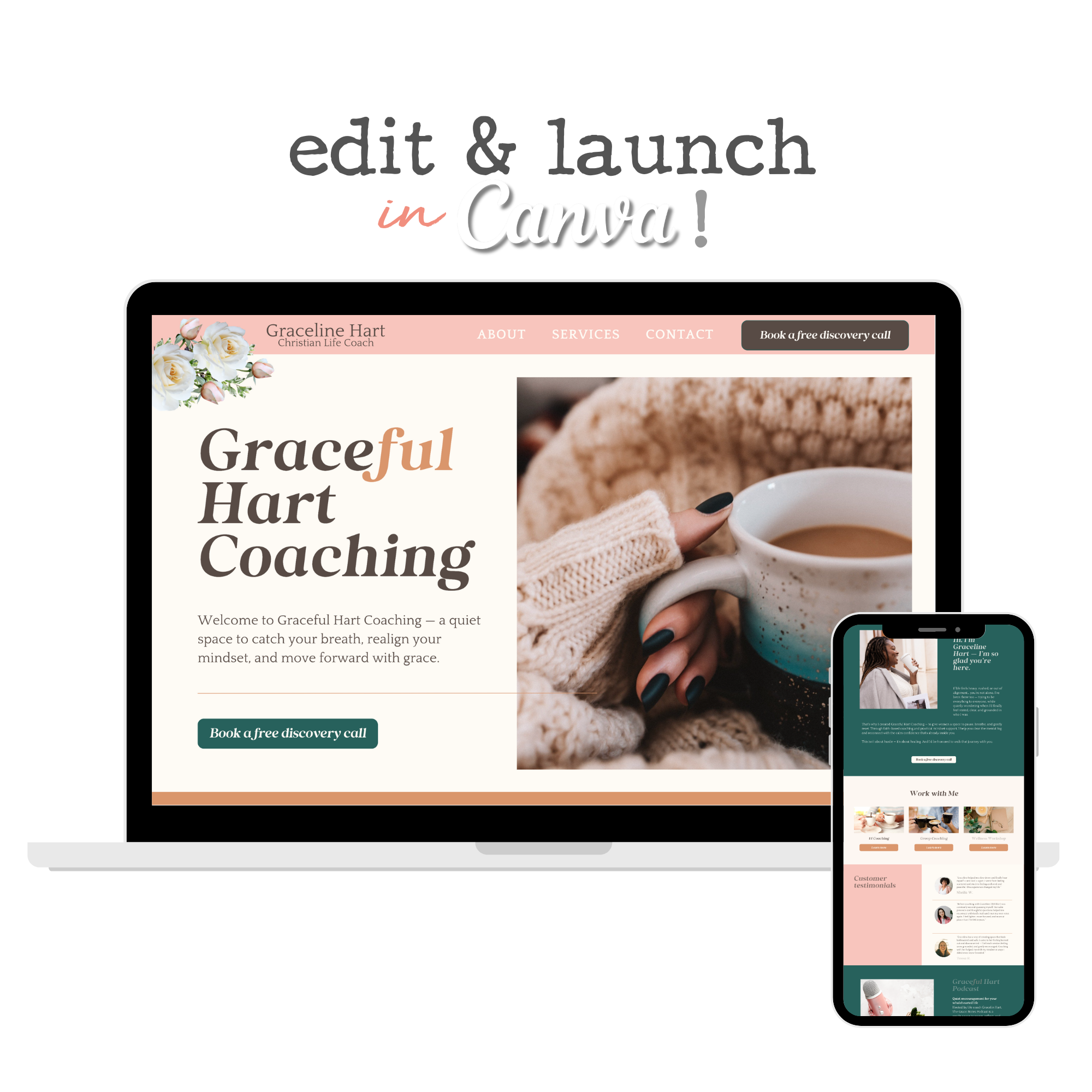 This fully customizable Canva website template was created with heart for life coaches, doulas, midwives, therapists, consultants, and other client-based businesses.